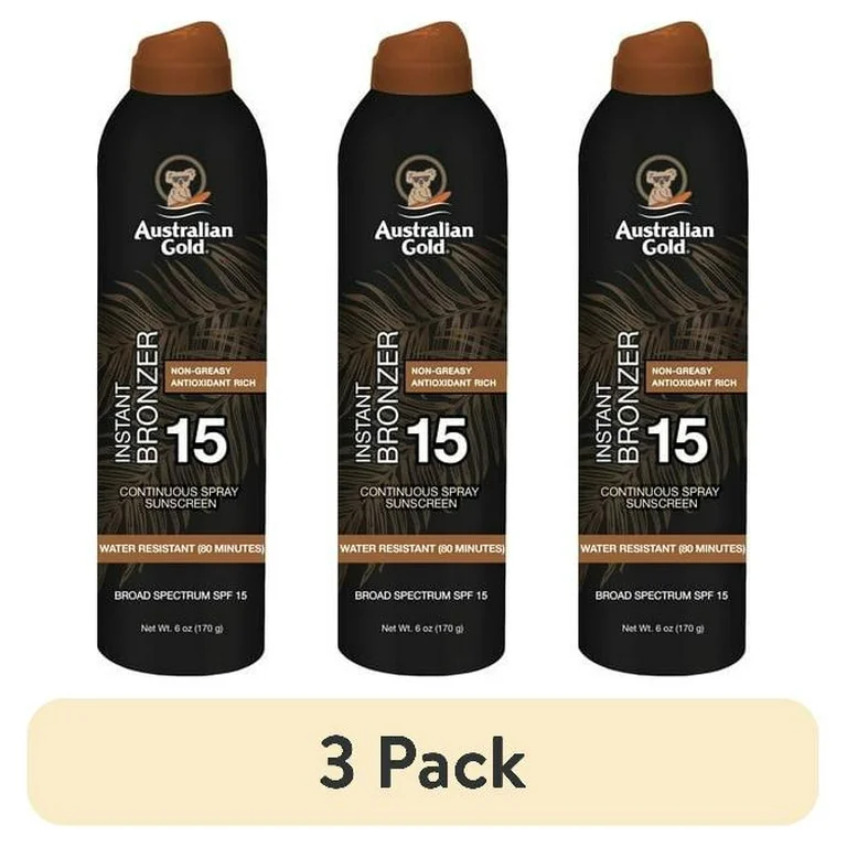 (3 pack) Australian Gold Continuous Spray Bronzer SPF 15, 6 oz