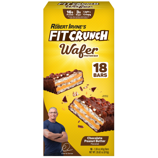 FITCRUNCH Wafer Protein Bars, 16g Protein, Chocolate Peanut Butter, 1.59 oz, 18 ct
