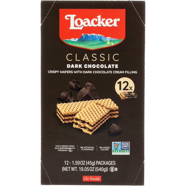 Loacker Classic Crispy Wafers, Dark Chocolate Cream Filling, 1.59 oz, 12 ct