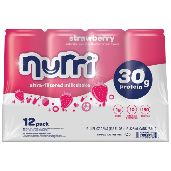 Nurri Ultra-Filtered Milk Shake, 30g Protein, Strawberry, 11 fl oz, 12 ct