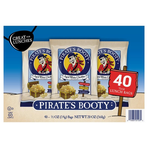 Pirate's Booty Rice and Corn Puffs, Aged White Cheddar, 0.5 oz, 40 ct