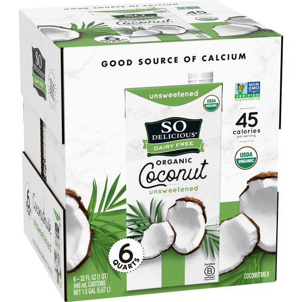 So Delicious Organic Coconutmilk, Dairy Free, Unsweetened, 32 fl oz, 6 ct